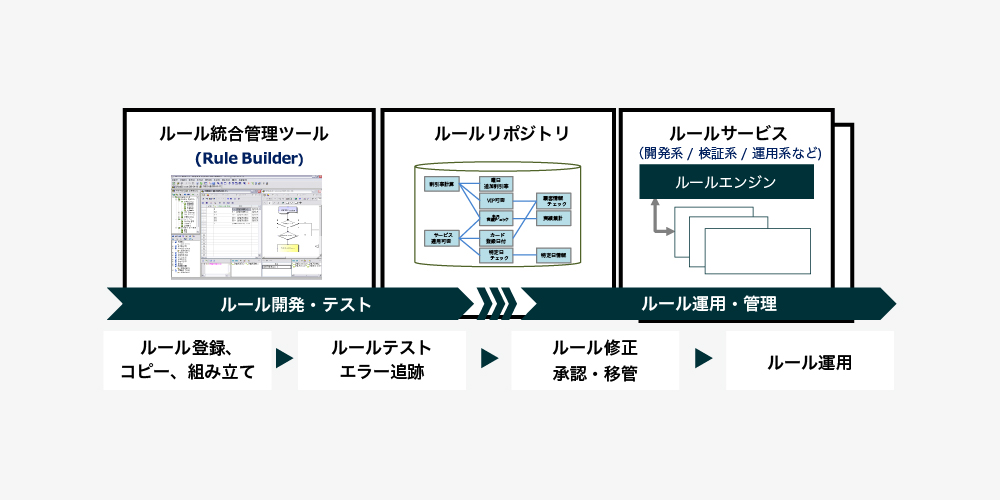 InnoRulesは、厳しいお客様要求に応える中でユーザの利便性の高いルール開発ツールとして進化してきました。ビジネスルールの開発/運用/管理をワンストップで実現します。ルール編集及びテスト、本番環境への移管などビジネスルールのライフサイクル全般を統合的に管理できます。これにより、保守運用コストの削減が可能になります。